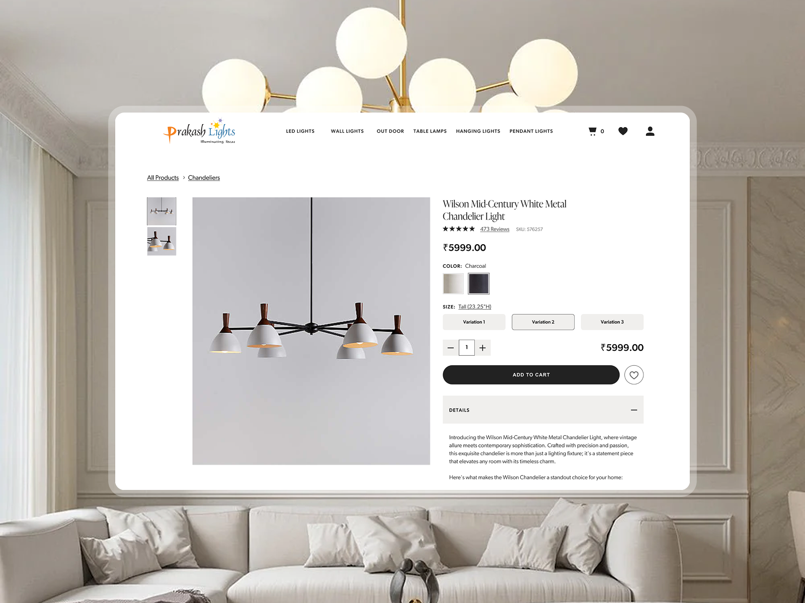 Minimalist, modern Shopify store to showcase premium lighting products with a clean, high-end aesthetic.