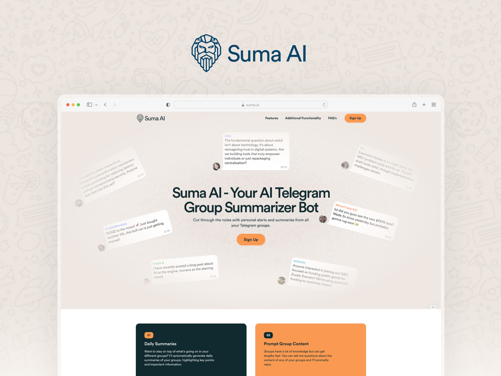 A complete visual identity and an engaging web presence for their flagship Telegram bot service
